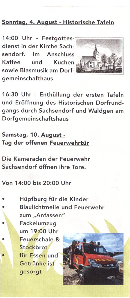 740 Jahre – Sachsendorf und Wäldgen feiern – das detaillierte Programm!