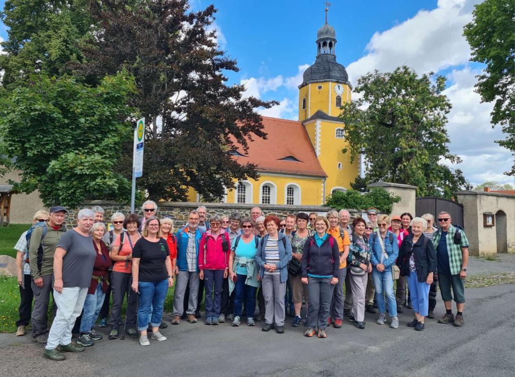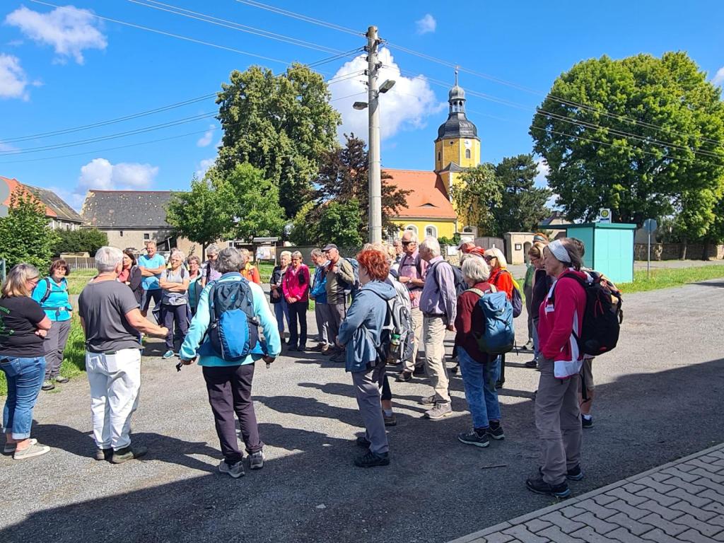 Am Mittwoch, dem 6. August traf die 35-köpfige Wandergruppe um 10 Uhr ein. Die Anreise erfolgte per Zug bis Kühren und mit dem Bus nach Sachsendorf,. Anschließend begrüßte Silvana Petermann die Gruppe im Namen des Heimatvereins. „Eine knappe Stunde war Zeit, der Sachsendorfer Ortsgeschichte zu lauschen und warum Kurfürst August im Wermsdorfer Wald rechteckige Alleen und Schneißen anlegen lies“, erzählte Petra Musch.