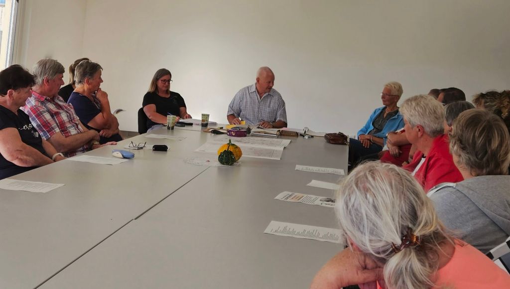 Am 6. September trafen sich 21 Interessierte zum Dorfgespräch mit dem ehemaligen Sachsendorfer Lothar Wolf. Die Aufzeichnungen des Heimatpflegers Fritz Lommatzsch aus den 50er Jahren wurden ihm vor einiger Zeit übergeben. Für den Austausch hatte Lothar Wolf Inhaltsangaben erarbeitet, welche das Interesse an den vielen Themen weckte.