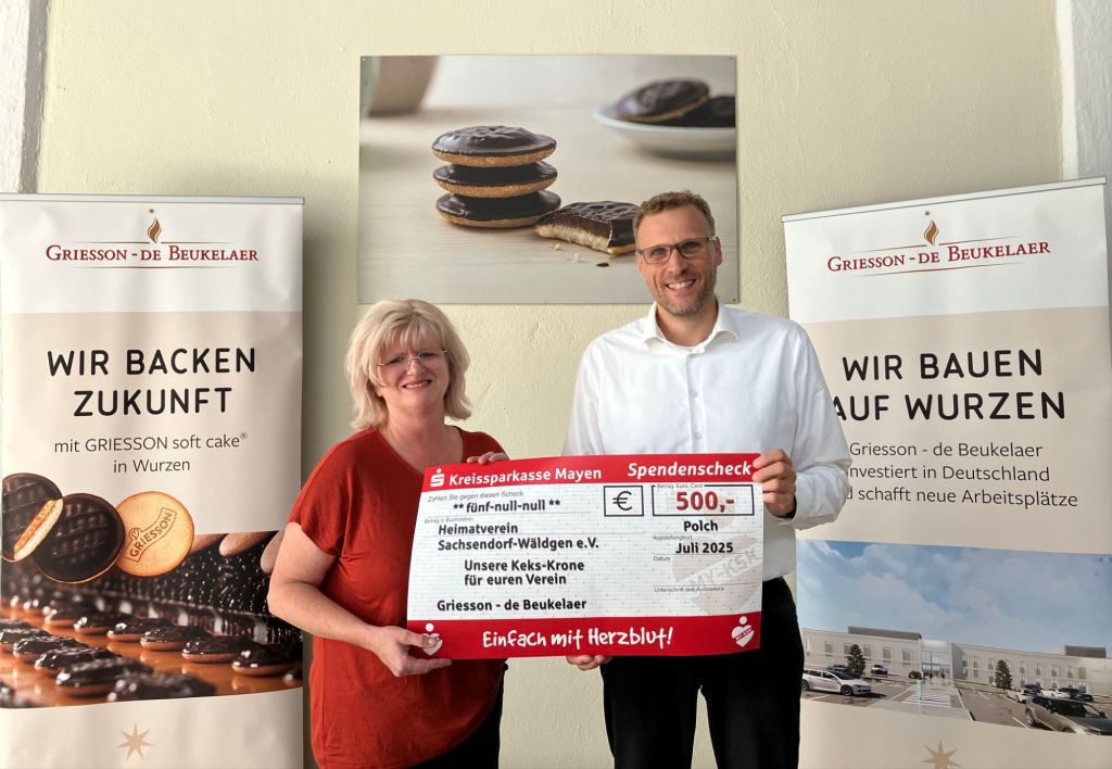 Große Freude beim Heimatverein Sachsendorf-Wäldgen e.V.: Dank einer mitarbeiterbezogenen Aktion der Firma Griesson – de Beukelaer durften wir eine Spende in Höhe von 500 Euro entgegennehmen.