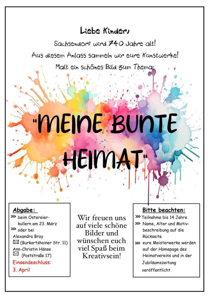 Lasst uns gemeinsam die Vorfreude auf das Jubiläum steigern und unsere Gemeinschaft weiter stärken. Der Heimatverein Sachsendorf-Wäldgen e.V. freut sich auf eure Unterstützung!