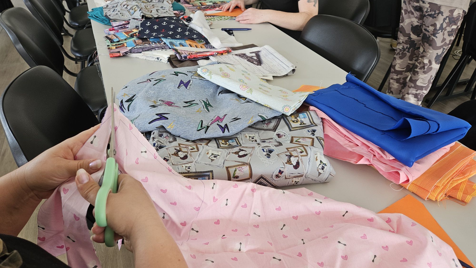 Geschnitten und genäht wurde von 13 bis 16 Uhr. In dieser Zeit wurden etwa 110 Meter Wimpelkette geschafft. Das reicht natürlich noch lange nicht aus! Ein nächstes Treffen ist in Planung. Seid gern dabei! Nähere Informationen gibt es dann natürlich auch auf unserer Homepage.