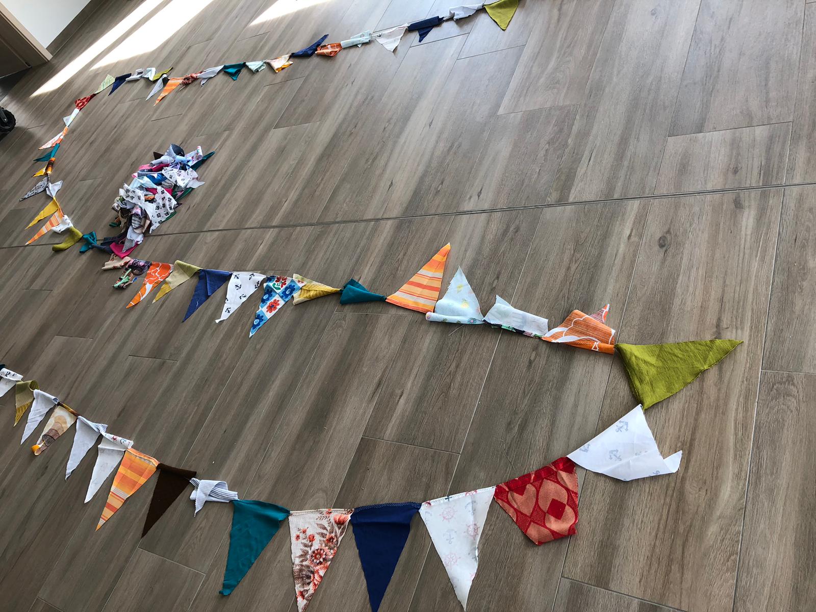 Bereits am 5. Juni fand ein letztes Treffen zum Wimpelketten nähen statt. Die fleißigen Schneiderlein haben an drei Terminen insgesamt 56 Ketten mit einer Länge von über 610 m hergestellt! Die vielen Stoffspenden sind so gut wie aufgebraucht und der Rest wird nun in Heimarbeit gefertigt.