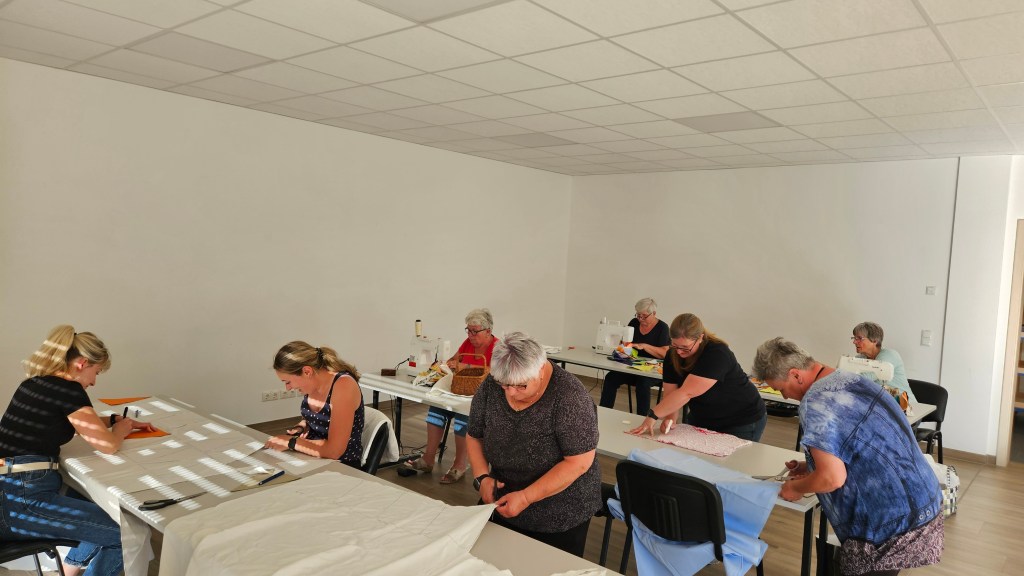 Am Montag, den 13. Mai war es wieder soweit: Die Nähstube im Dorfgemeinschaftshaus hatte geöffnet. Ab 18 Uhr wurde fleißig zugeschnitten und genäht und die neun Frauen ließen keine Nähmaschine still stehen. Bisher wurden insgesamt 285m Wimpelketten für das Jubiläum erstellt. Ein nächster Termin ist in Planung. Es wird jede helfende Hand benötigt! Seid ihr dabei?