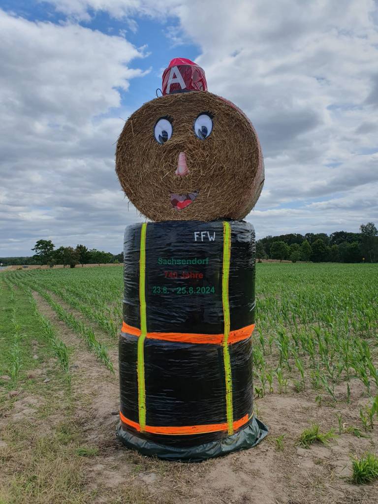 In Vorbereitung auf das 740-jährige Jubiläum von Sachsendorf im August wurden vier wunderschöne Strohpuppen an den Ortseingängen aufgestellt. Diese freundlichen Figuren heißen alle herzlich willkommen und verbreiten bereits jetzt schon ein wenig festliche Stimmung in unseren Dörfern.