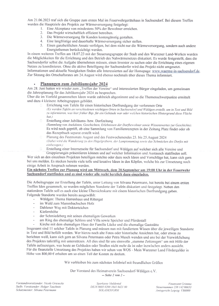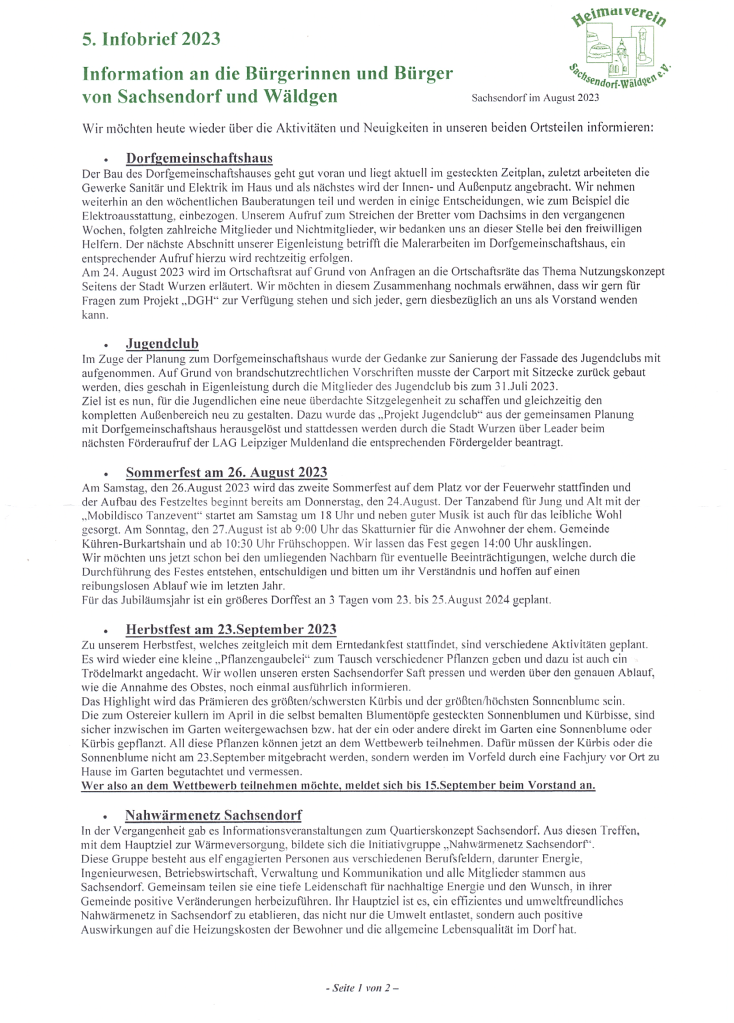 Infobriefe Heimatverein