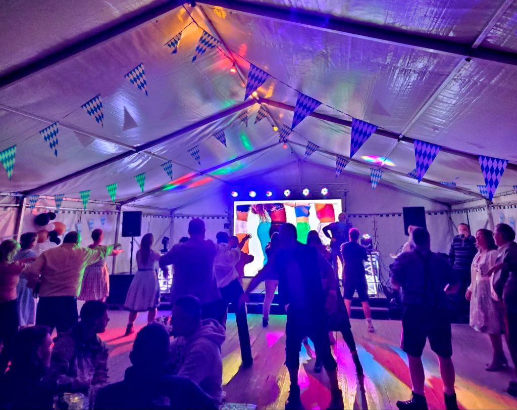 Was für ein Abend! Am Samstag hieß es „O’zapft is“ im beheizten Festzelt am Dorfgemeinschaftshaus, organisiert von unserer Freiwilligen Feuerwehr. Das Zelt war natürlich blau-weiß geschmückt, die Stimmung von Anfang an top – und spätestens nach der ersten Maß sowieso!
